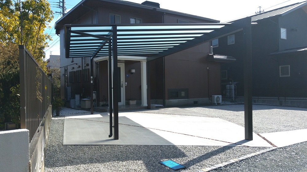 延長梁を使用したカーポート新築外構の施工実績フジ・エクステリアの庭ブログ。