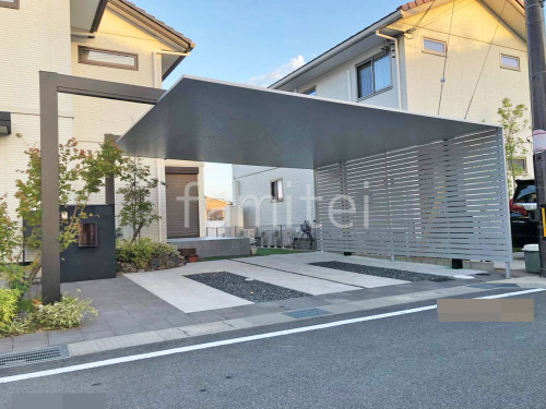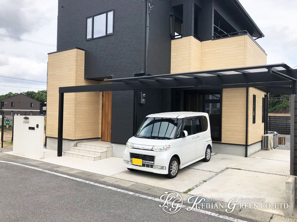 梁延長のカーポートでスタイリッシュなエントランスに 大津市京阪グリーン滋賀・京都・大阪のエクステリア・ガーデン・外構工事。