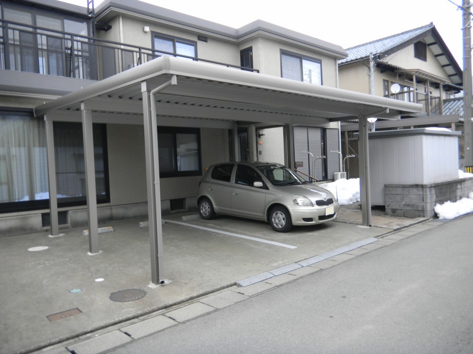 アプローチを守る間口延長折板カーポート 福井市 K様邸福井県カーポート・エクステリア福井ミニハウス。