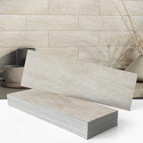 AmazonVAOVIキッチンタイルシート防水 耐熱,大理石 タイルシール 防水 洗面所 シール式DIY防水 ウォールパネル サブウェイタイルベージュ,5枚壁紙。