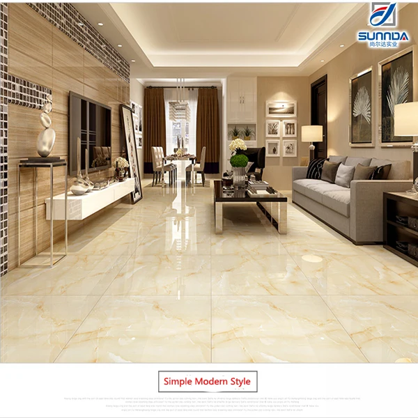 床タイル新デザインベージュ大理石光沢仕上げ耐摩耗性超光沢艶出し研磨磁器。