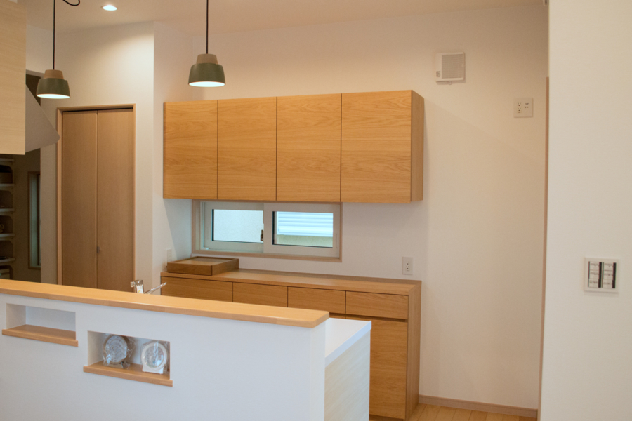オーク 吊り戸棚のオーダーキッチンボード神戸の家具屋 cachito furniture 一枚板・オーダー家具・無垢材の家具・修理など。