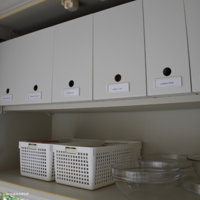 キッチン吊戸棚の収納遍歴 : ほぼ100均で片付け収納に挑戦。