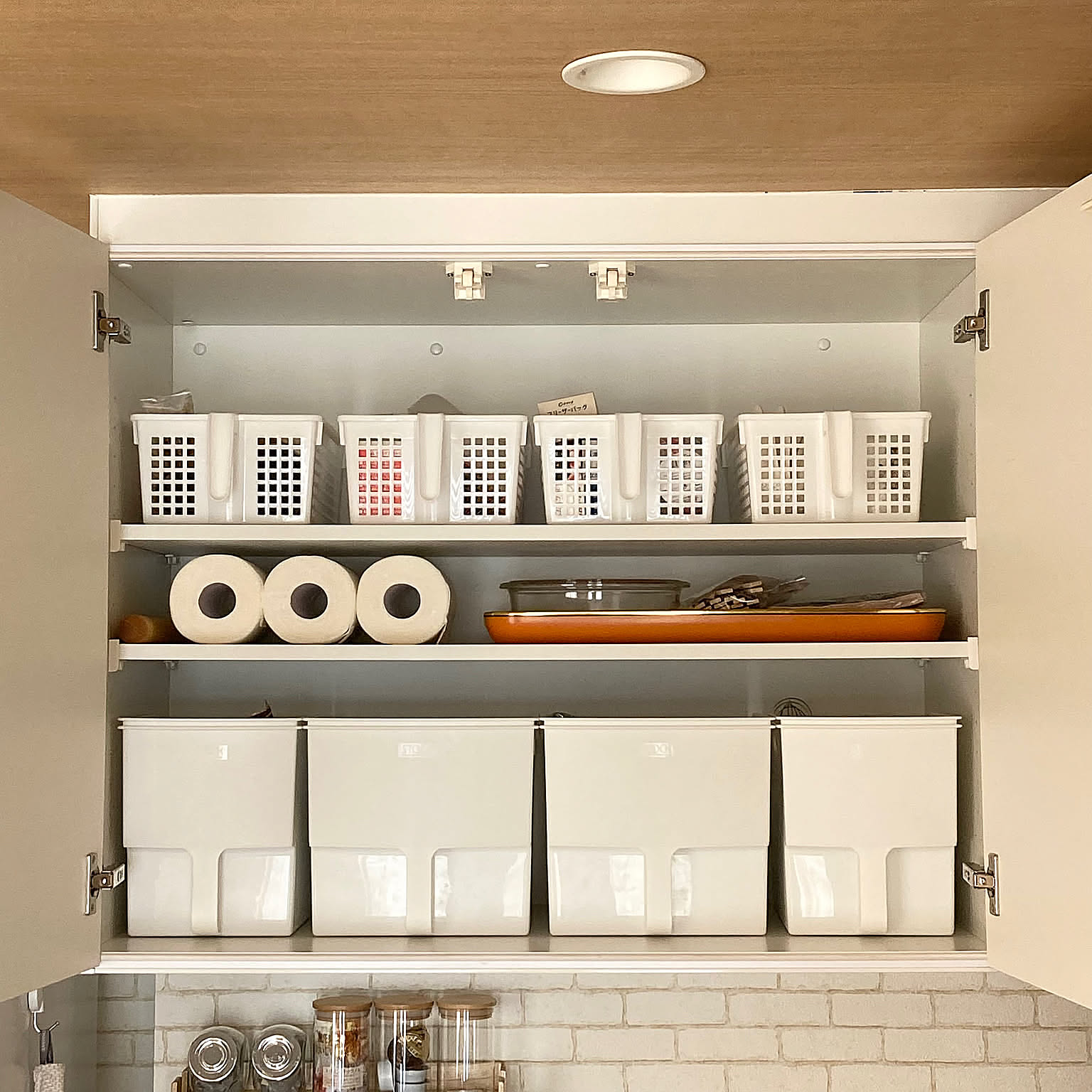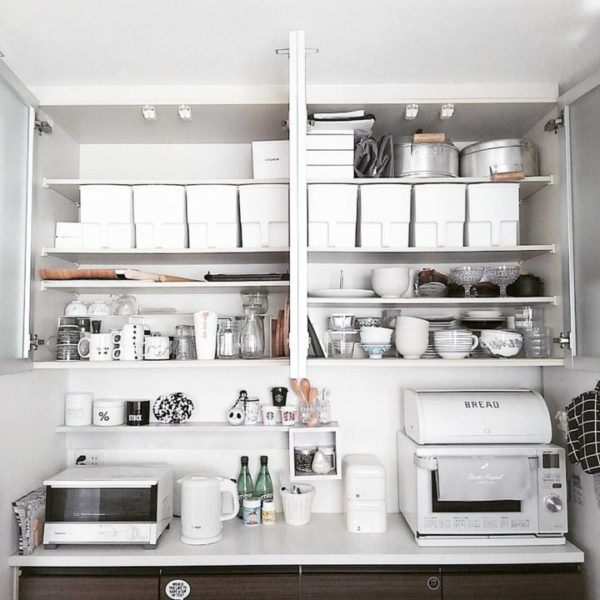 真似したい!キッチンの吊り戸棚をフル活用できる収納ワザ。