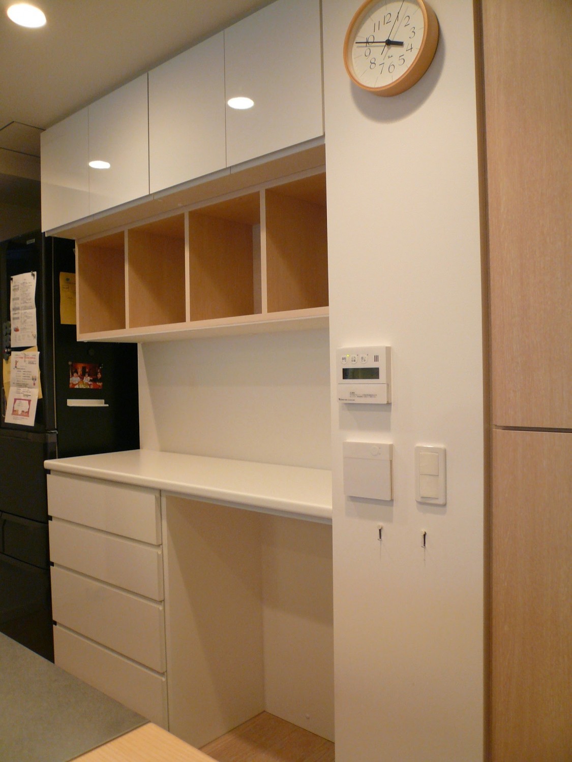 壁から冷蔵庫までの食器棚と吊戸棚 ツールバーを付けて 5057 - オーダーメイド家具キッチン家具工房ツリーベ。