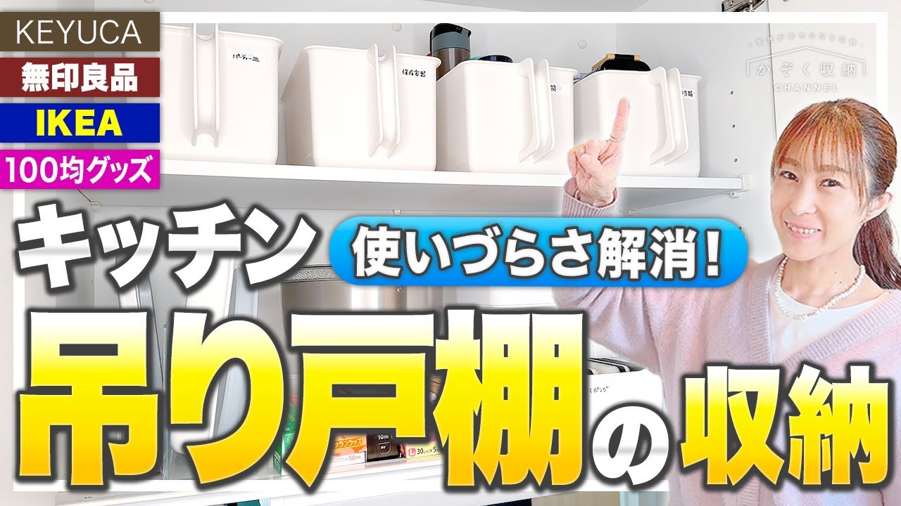 キッチン吊り戸棚の収納 使いづらさが解消!スッキリして収納量が増える!おすすめ収納グッズとビフォーアフター。100均・無印良品・イケア・ニトリ・KEYUCAの身近なグッズで出来る。