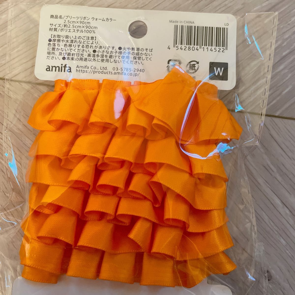 プリーツリボン オレンジ 2.5cm×90cm セリア amifa 装飾パーツ。