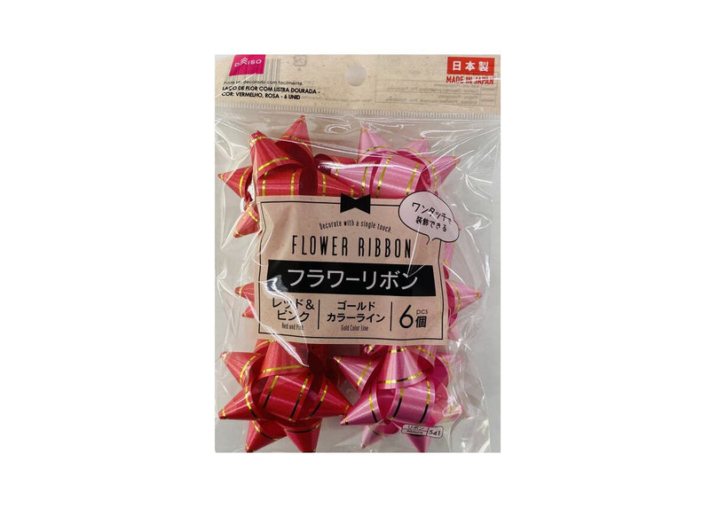 フラワーリボン ゴールドカラーライン、レッド&ピンク、6個-100均 通販 ダイソーオンラインショップ 公式。
