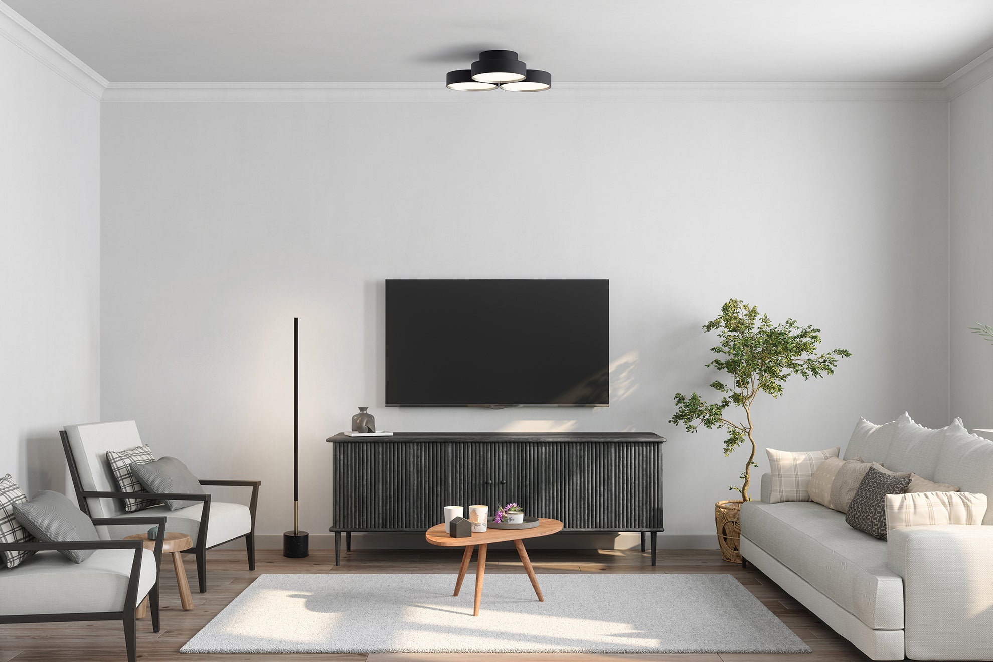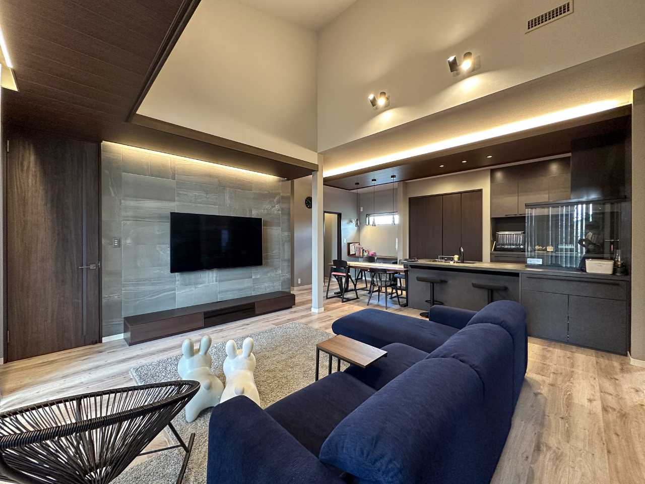 ブラックの照明が主役のモダンスタイルリビングARTWORKSTUDIO公式。