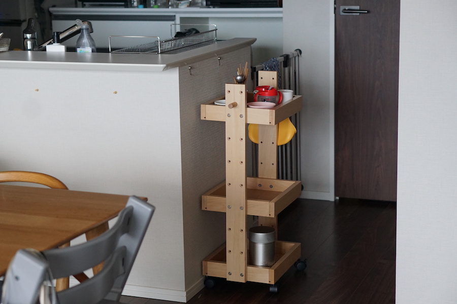 キッチンワゴンの使い方子どもが自分で配膳下膳できる『木製フリーワゴン』がおすすめあやまるハウス。