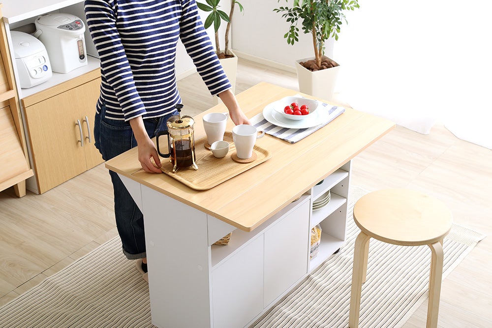 バタフライタイプのキッチンワゴン 、使い方様々でサイドテーブルやカウンターテーブルにChane。