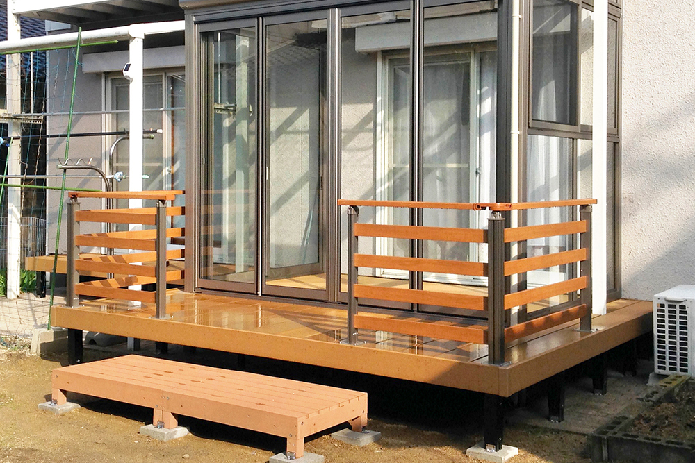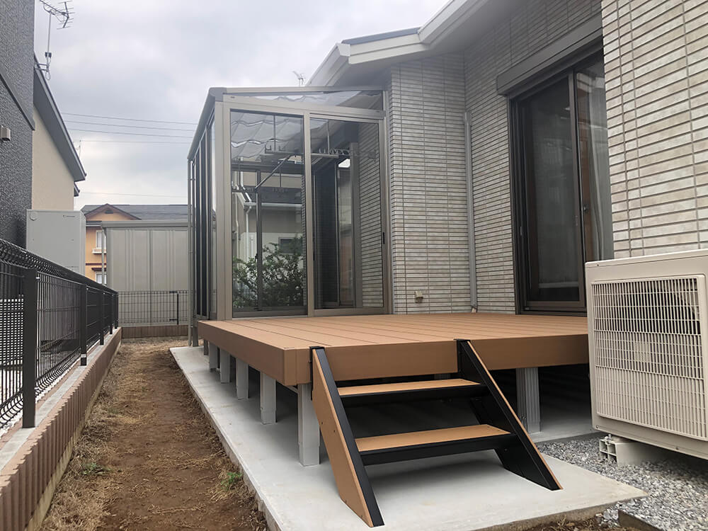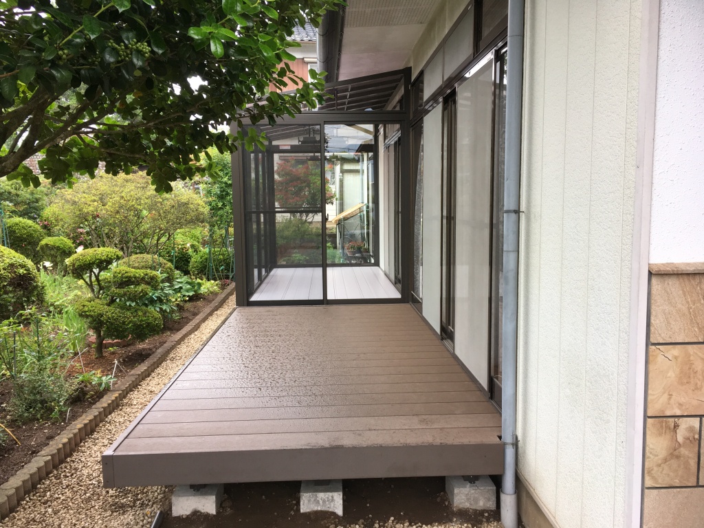 ふじみ野市で人工ウッドデッキ付きサンルーム工事ふじみ野市でリフォーム・注文住宅なら神木工務店までご相談ください。