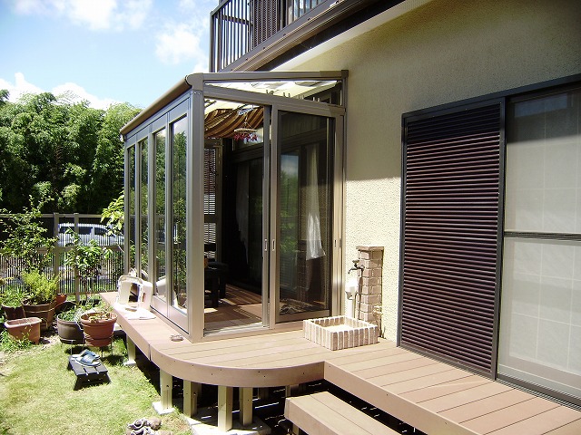 ウッドデッキにサンルームを新設リフォーム費用・価格・料金の無料一括見積もり リショップナビ。