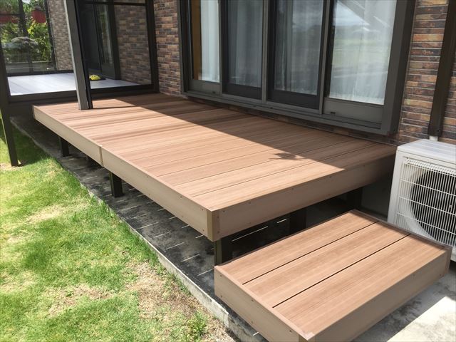 新発田市月岡 一般住宅 既存ウッドデッキ サンルーム取付工事新潟市で外構工事を頼むなら雄飛建設。