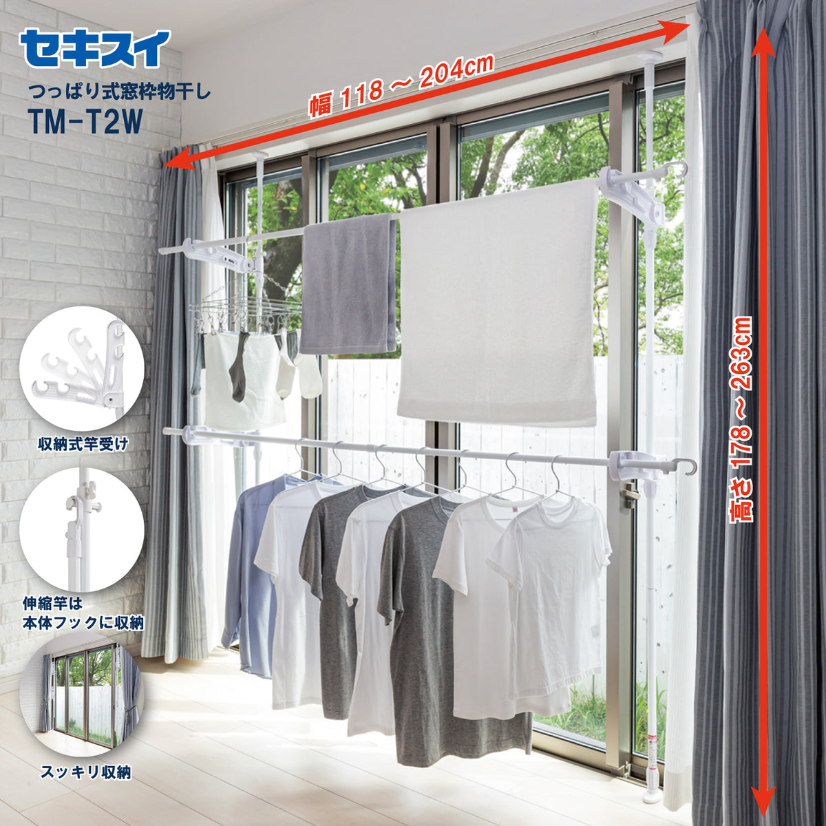 SEKISUI J-SHOP つっぱり式窓枠物干し TM-T2W 販売ページ。
