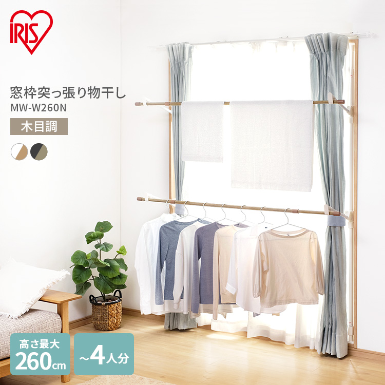 物干し 窓枠 窓枠物干し おしゃれ 室内物干し 木目調 省スペース 伸縮 簡単設置 3人分 部屋干し アイリスオーヤマ MW-W190N * 窓枠物干し 2段 MW-W190N ホワイト H286108 │アイリスオーヤマ公式通販アイリスプラザ。