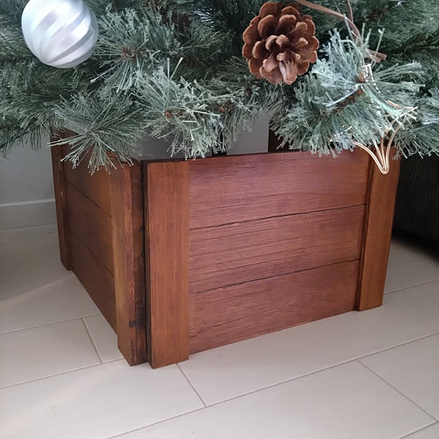 簡単☆クリスマスツリーの足元隠しDIY!木材と100均材料でおしゃれに早変わり! - Chocori's DIY。