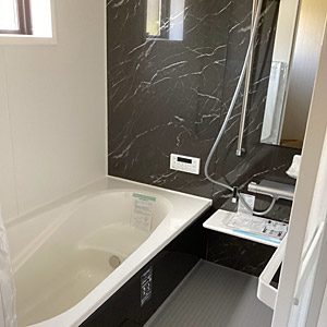 ブラック天井で癒しのバスルーム住宅リフォームのPanasonicリフォームClub。