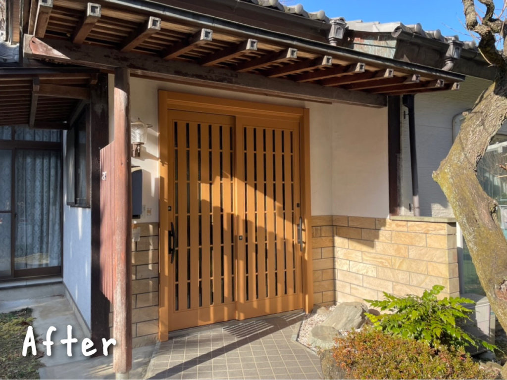 和風の引戸をあえてドア!?~和モダンな玄関ドアに生まれ変わる~ 広島市安佐北区 トータスエステート本店広島市安佐北区窓・玄関ドア・エクステリアリフォームのプロショップ。