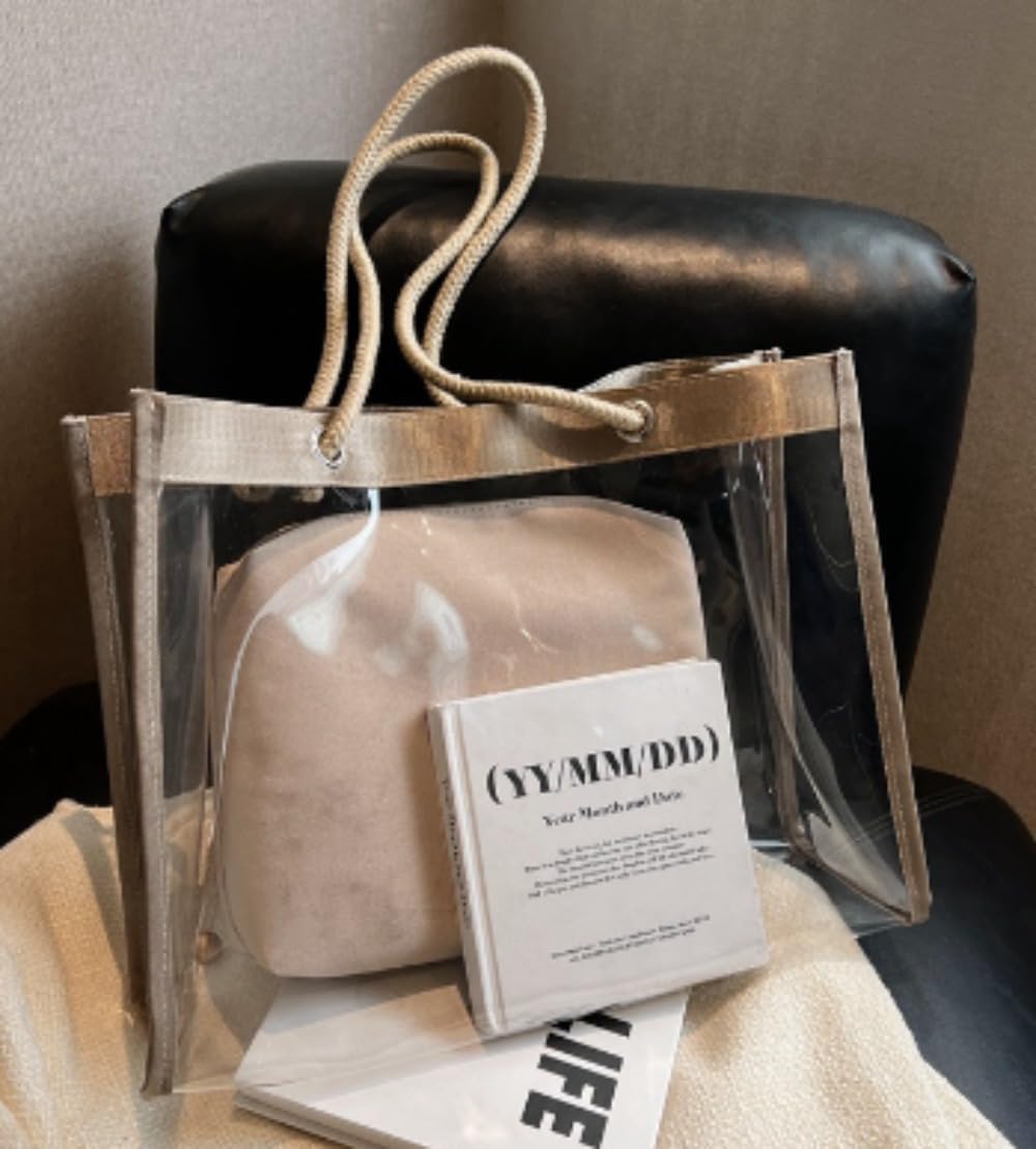 クリアバッグ 手持ち 透明 大容量 見えるショルダー ビニール袋 大きめ 収納袋付き 外出用。