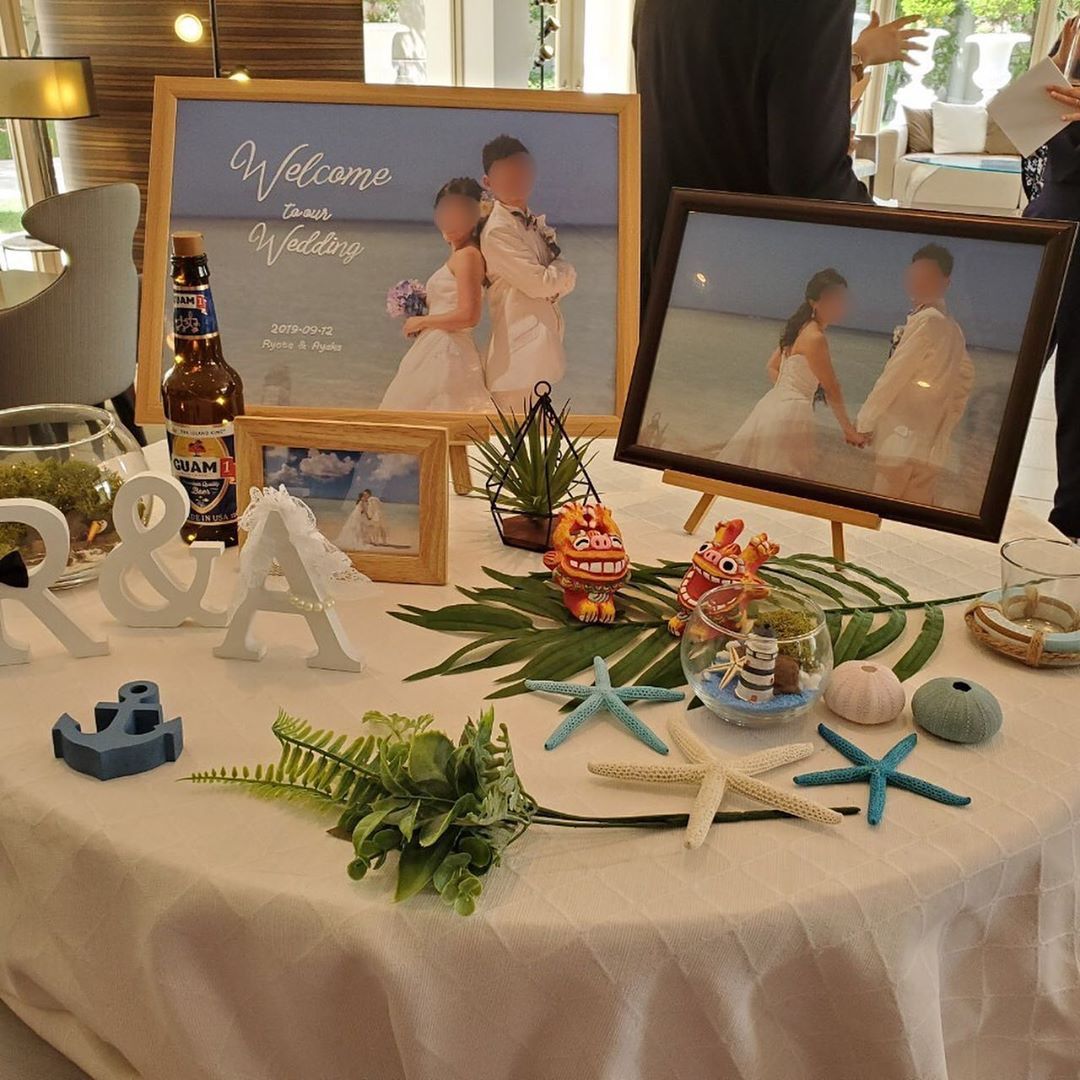 ウェルカムスペースは100均で揃えて頑張った! ウェルカムボードも手作りしてコスパ良し。 3枚目のフォトフレームはとんちゃんから!ほんとここの式場に合ってる。ウェルカムスペース。