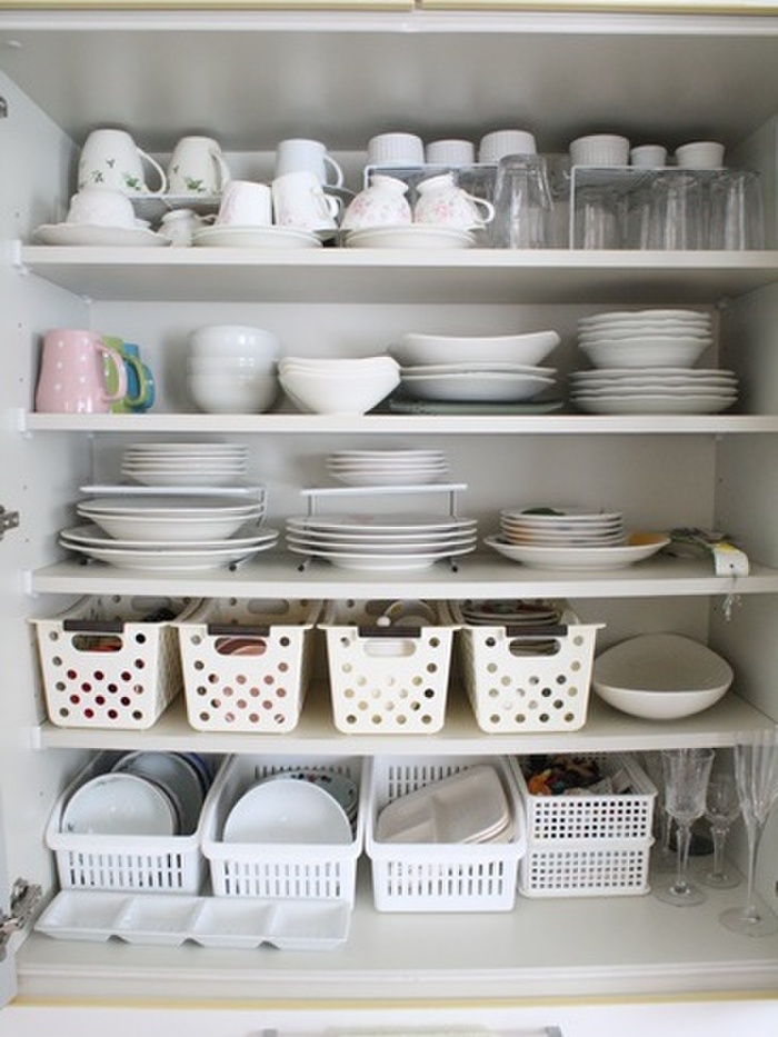 食器棚の収納術 すぐ真似できる!使いやすくスッキリしたキッチンにする収納方法をご紹介サンキュ。