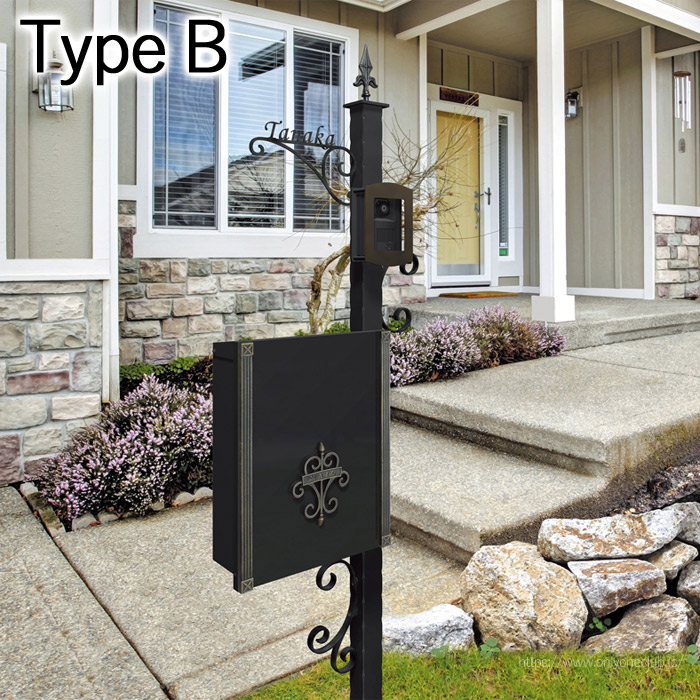 機能門柱 機能ポール 郵便受け 表札 インターホンカバー クラシカル エントランスポール TypeB ブラックマット 郵便 ポスト ロートアイアンポール スタンド 門柱 高級 おしゃれ 戸建 新築祝い 庭まわり-公式 エストアホーム。