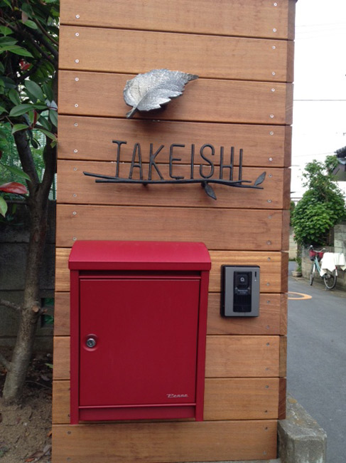 ウッドデッキのDIYリーベ - 表札&郵便ポスト。