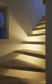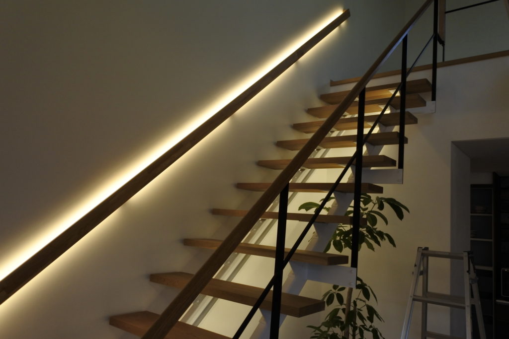 階段照明を手摺に埋め込む建築設計研究所。