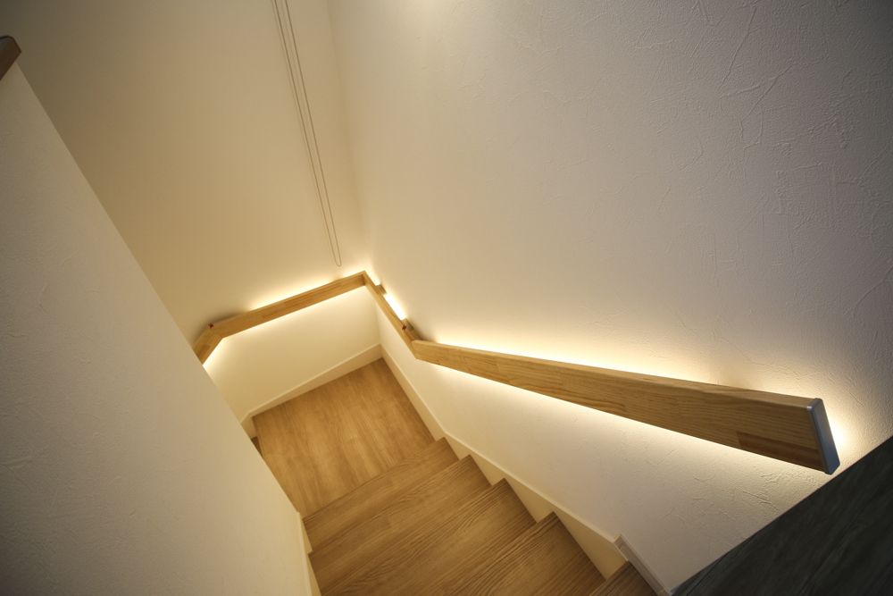 徳島 注文住宅 設計- MINIMARU DESIGN on Instagram: “安全性とデザイン性を兼ね備えた光る手すり。 階段の足元を優しい灯りでサポートします。ミニマルデザイン設計事務所徳島シュッとした家つくらん?階段階段照明階段手すり手すり手摺灯りのある。