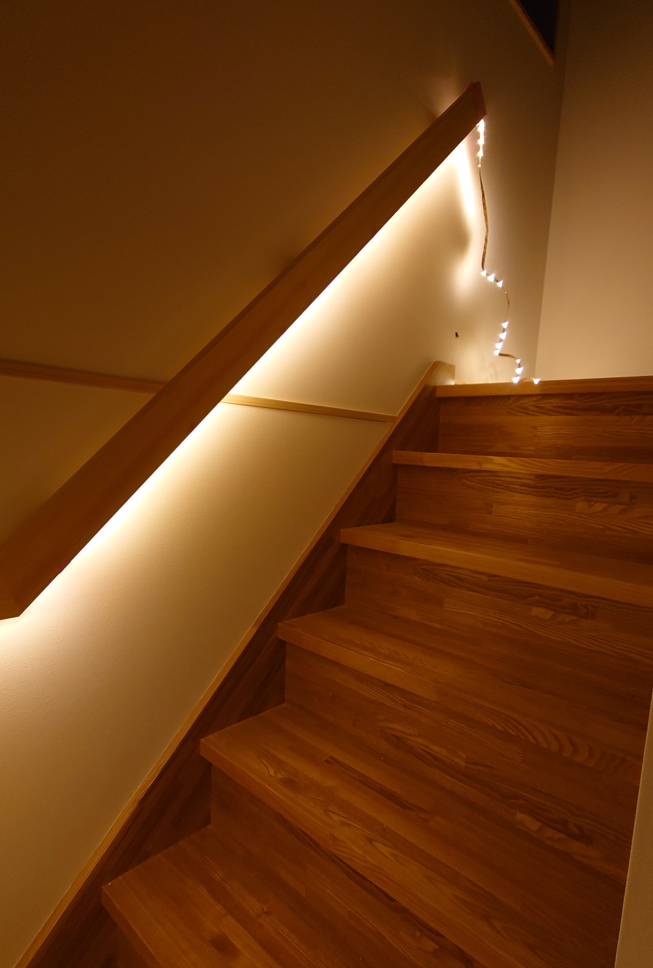 光る手すり この明るさだけでも十分上り下りはできそうですね👌常夜灯階段手すり間接照明階段ライトプランニング照明計画魚沼の家づくり魚沼市魚沼のリフォーム新築注文住宅。