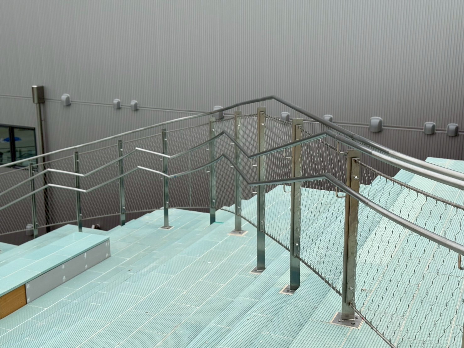 LED補助手すり バルコニー階段 久米工業株式会社。