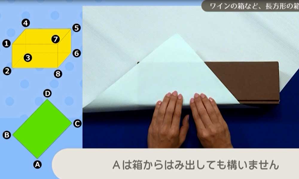 紙取りがよく分かる「たて長箱の包み方」。