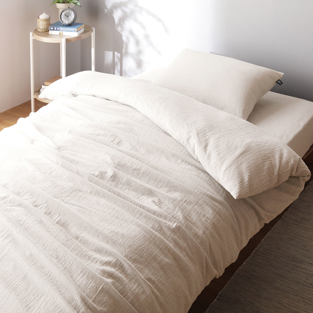 寝具3点セット 北欧 ボヘミアン グレー ホワイト 羽毛柄 活性染料プリント ピーチスキン加工 肌触り快適 ポリエステル 寝室インテリアやわらか肌触り洗いざらしコットン 先染め糸 綿100% マットレス用カバー3点セット シングル 洗い加工で心地よい肌触りのコットンカバー。