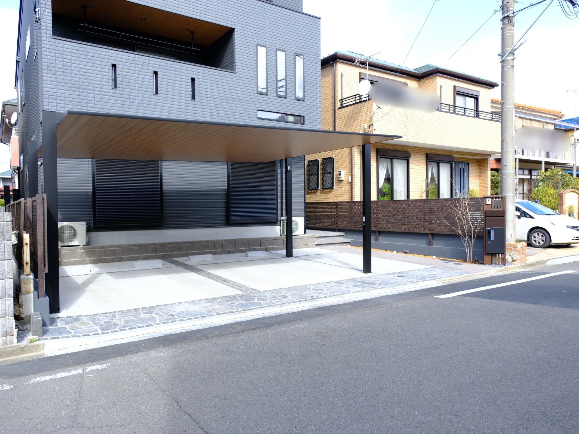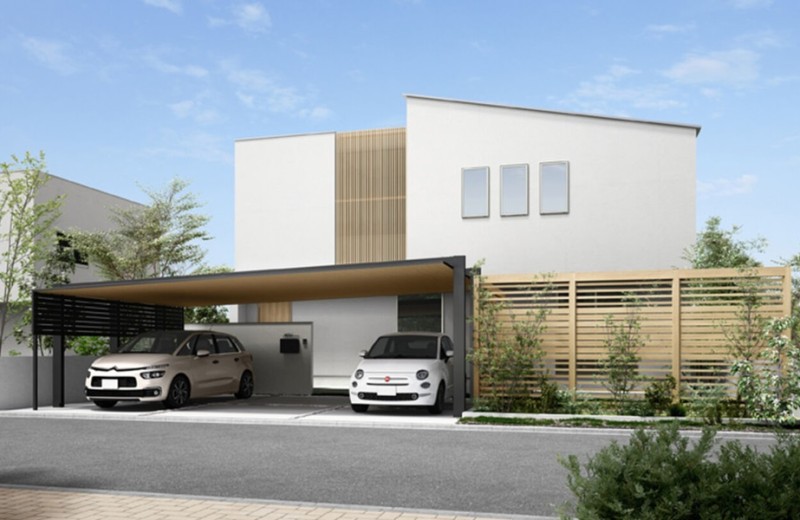 2台用カーポートSCと木目調目隠しフェンスを使ったエクステリア外構施工例 一戸建て LIXILリフォームネットリフォーム事例。