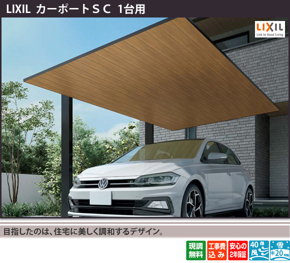 公式 カーポートSC 1台用 木調色-LIXIL - カーポートならエクスショップ。