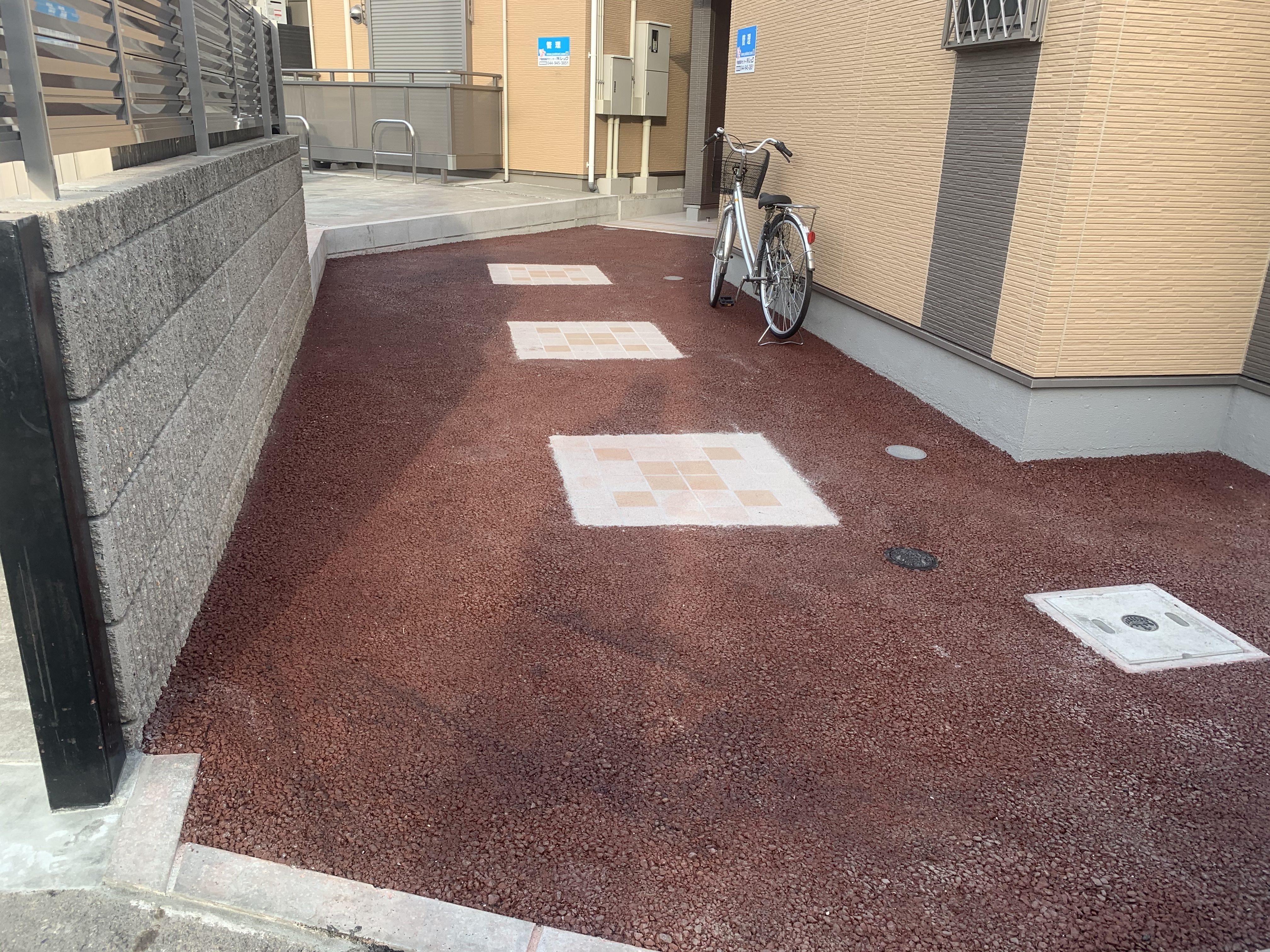 カラーアスファルトの舗装 広島市南区広島県外構 エクステリアわが家いいにわ。