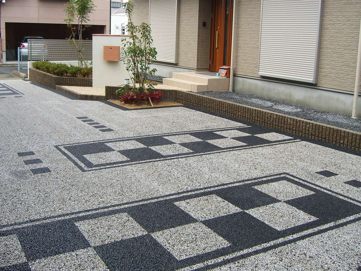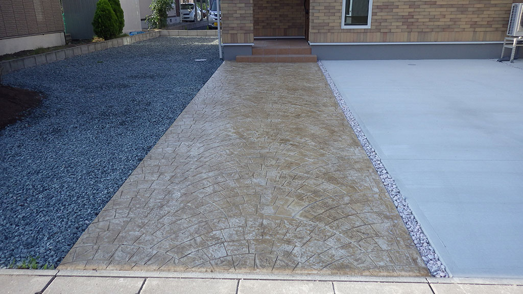 スタンプコンクリート・スプレーコンクリートで色や模様を付けておしゃれな駐車スペースに - 神戸で外構・エクステリアのことならひまわりライフへ♪。