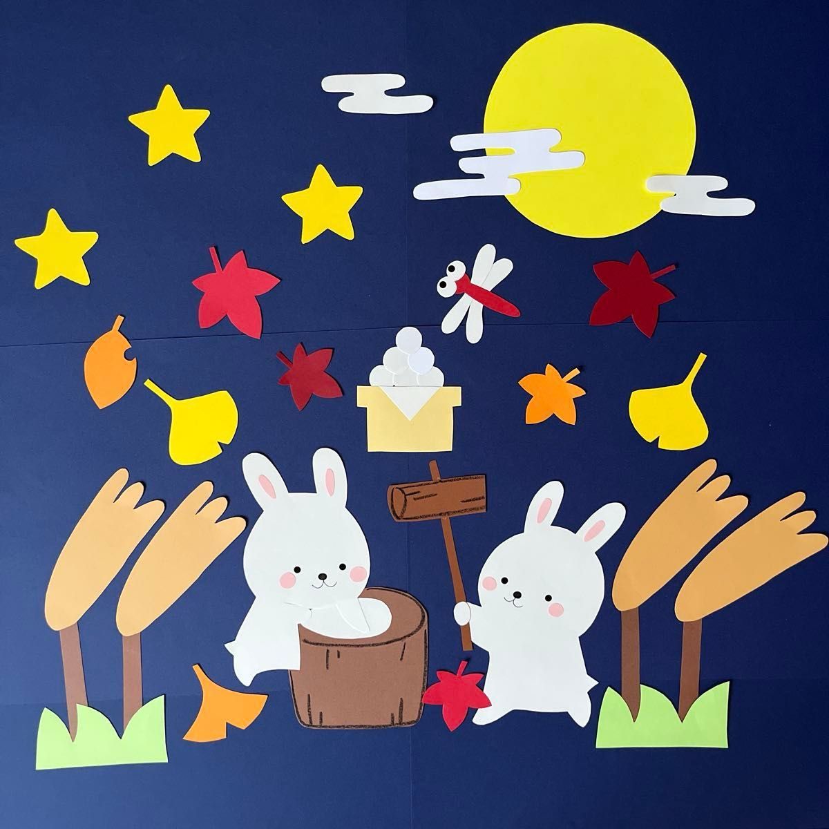 壁面飾り お月見 9月 秋 うさぎ とんぼ 保育園 幼稚園 高齢者施設 病院 画用紙 ハンドメイドYahoo!フリマ 旧PayPayフリマ。