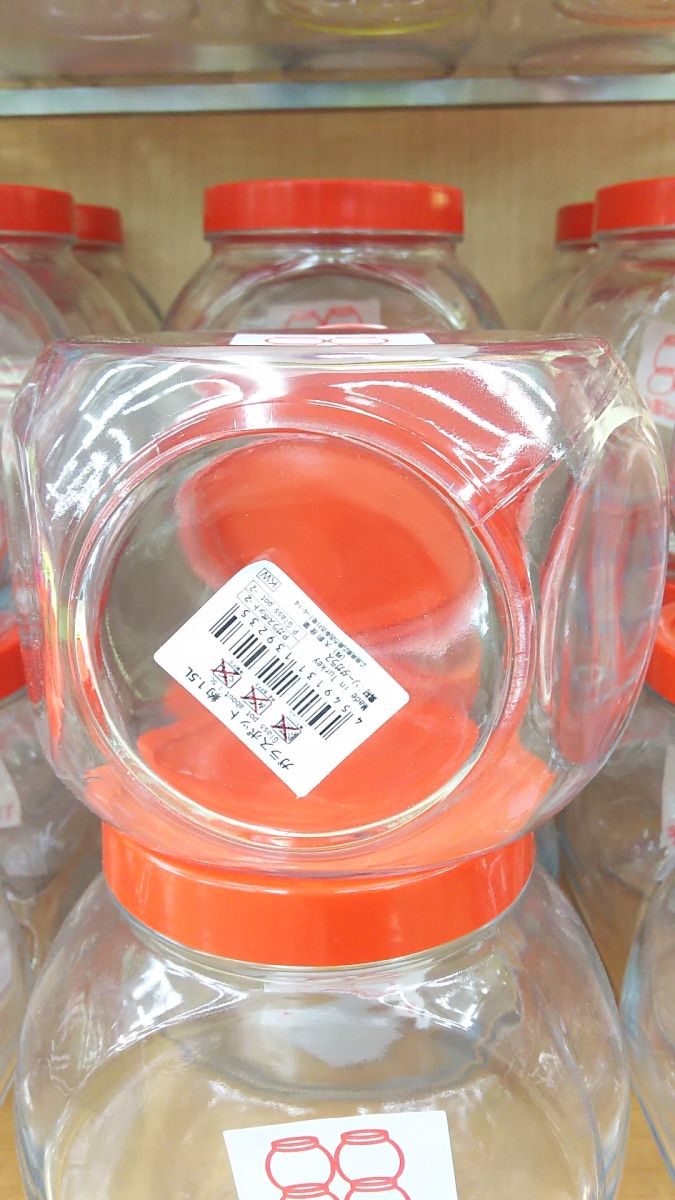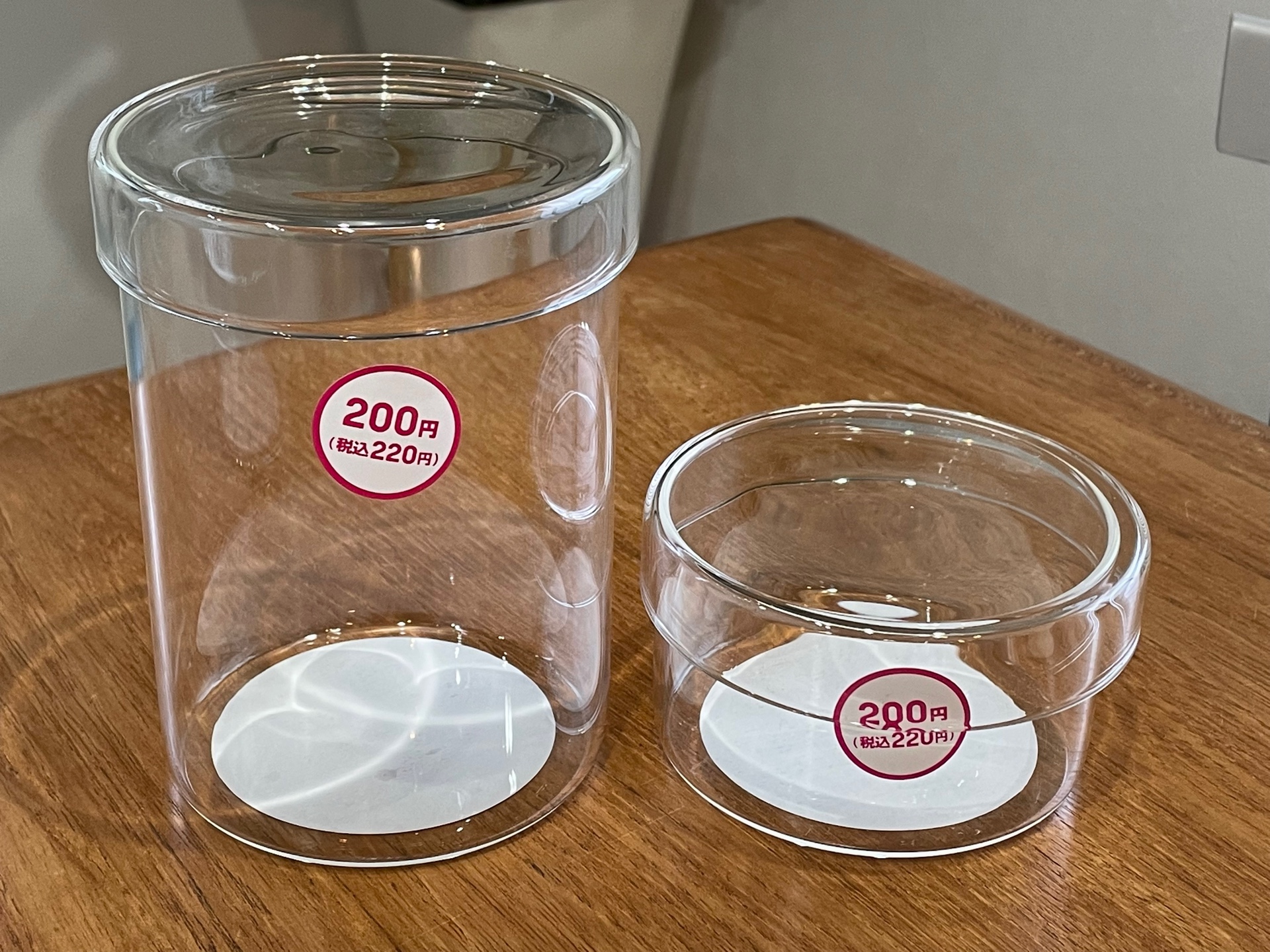 Plastic two glass potsTransparent glass pot with plastic lid中身が見やDaiso Canada co., ltd。