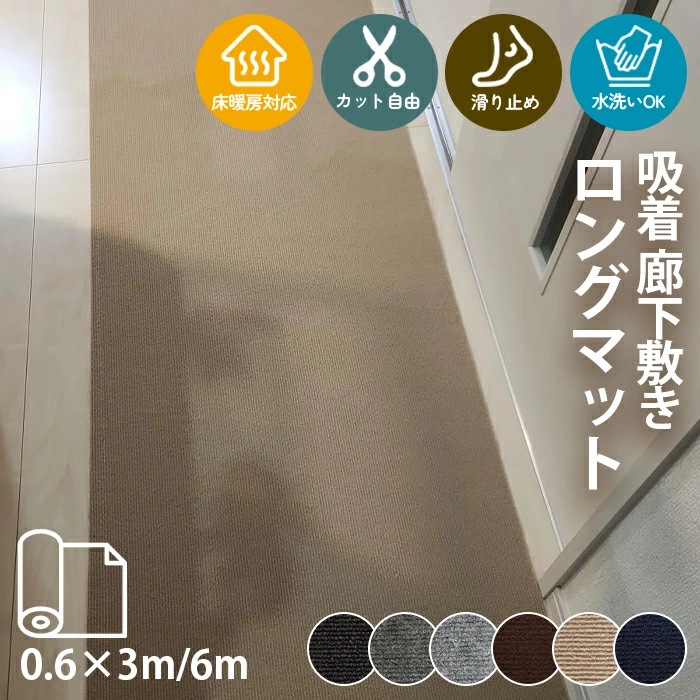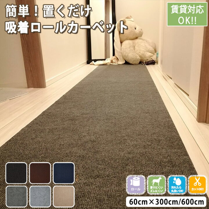 ロングカーペット 廊下 幅60cm 長さ6m 吸着 滑り止め 洗える 床暖房対応 防音 床保護 傷防止 ノンホルム フリーカット 簡単設置 –Branchée Beauté。