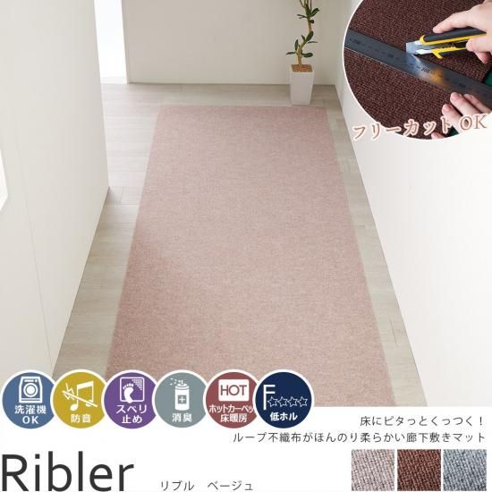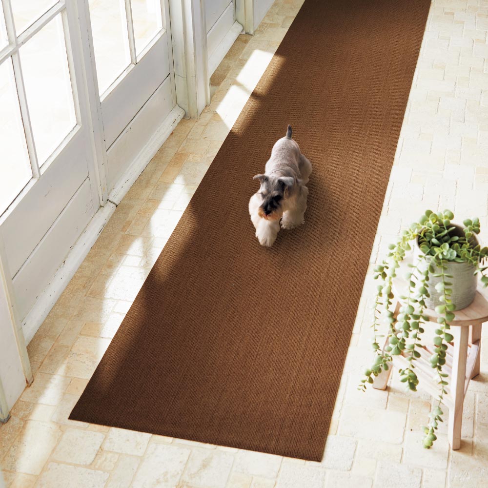 ASXMYAQ 廊下カーペット 90x500cm ラグ 廊下マット スレない 素足 水で洗える 騒音対策 玄関マット 子供 お年寄りピタっと吸着!足元の冷えや傷防止に防音機能の付いた廊下敷きマット『リブル ブラウン』- ラグ・カーペット通販 びっくりカーペット。