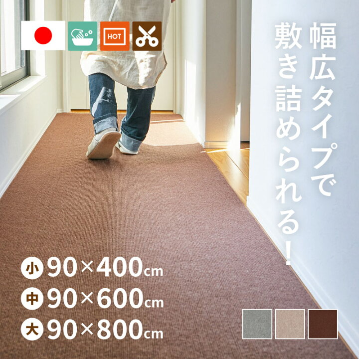 廊下敷きカーペット 廊下用ロングカーペット 90x400cm 吸着タイプ 滑りにくい 床 傷防止 冷え防止 足音 防音対策 フリーカット 洗える。