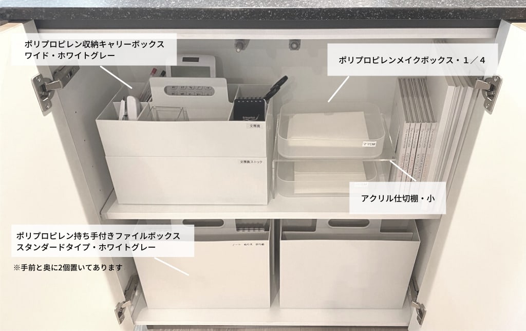 収納プロ監修! 無印良品アイテムでのパナソニックキッチン収納例〜前面・ダイニング側~。