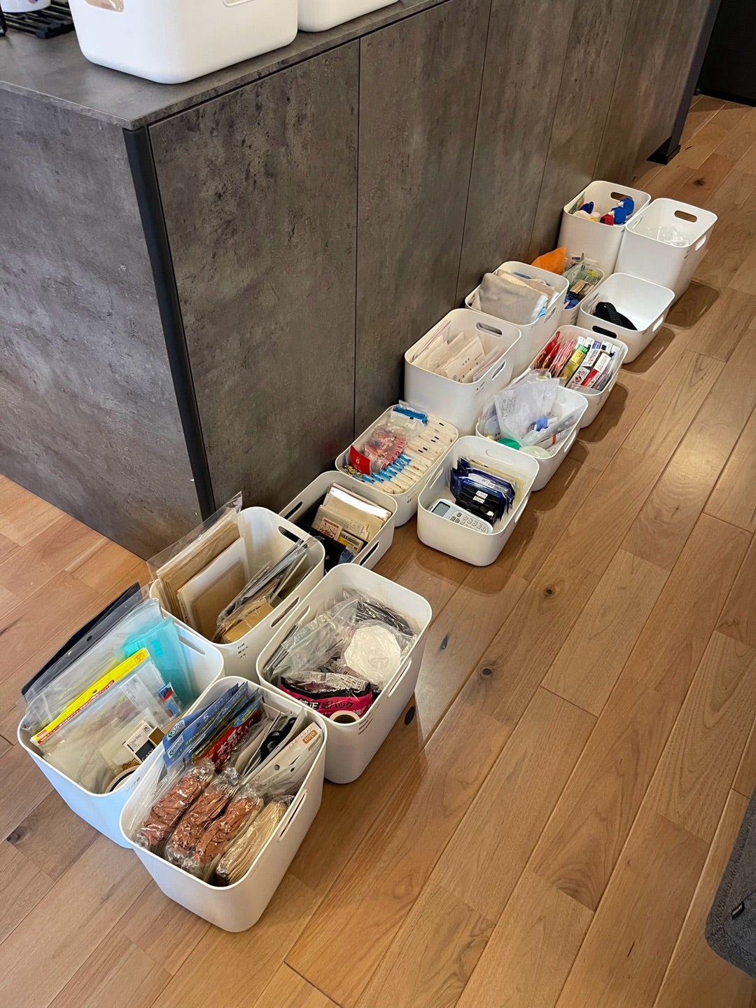 キッチンハウス前面収納✨@sumirin.yukihome さんの投稿をお借りしました キッチンハウス前面収納☺︎︎ よくお問い合わせいただく、キッチンハウスの前面の収納について、 その後 。 引越し前に大人買いしていた ニトリの収納ボックス。 pic2 このサイズ感で。 pic3。