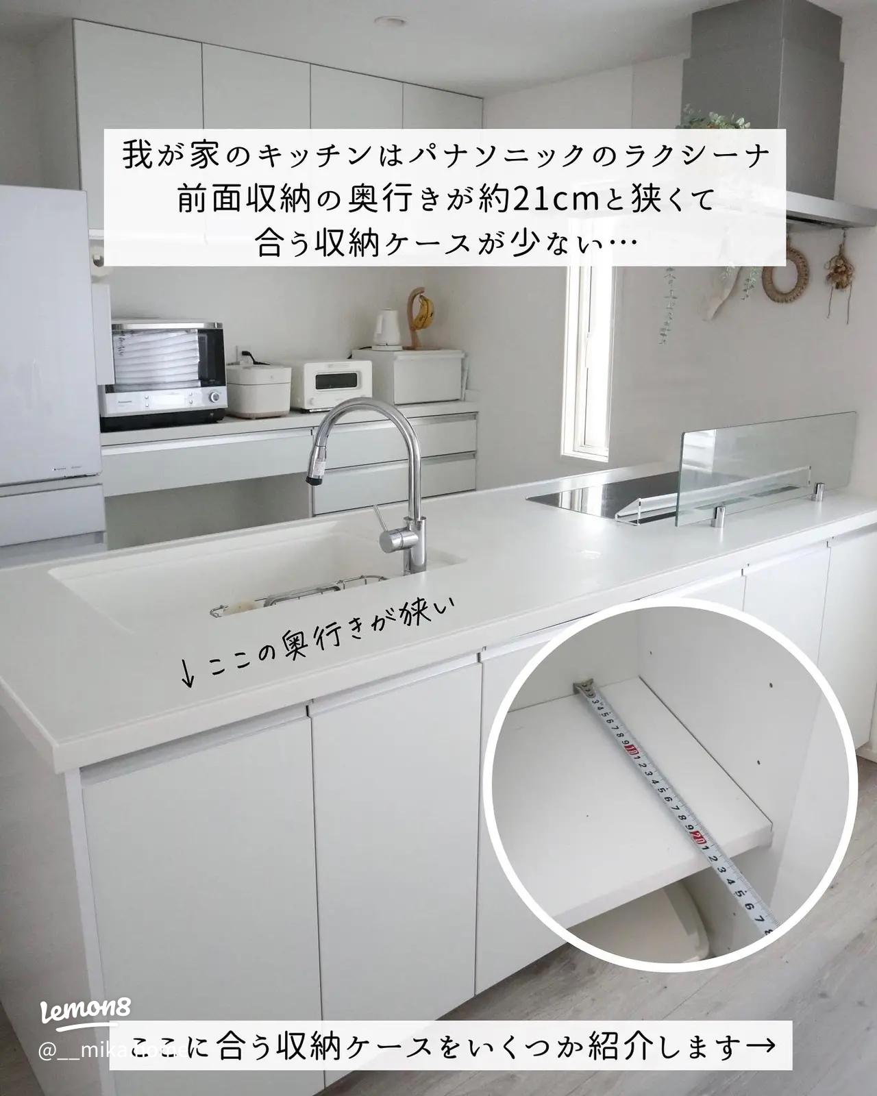 キッチン前面収納に最適な奥行き21cmの収納ケース。