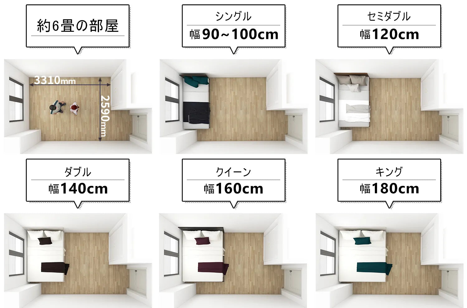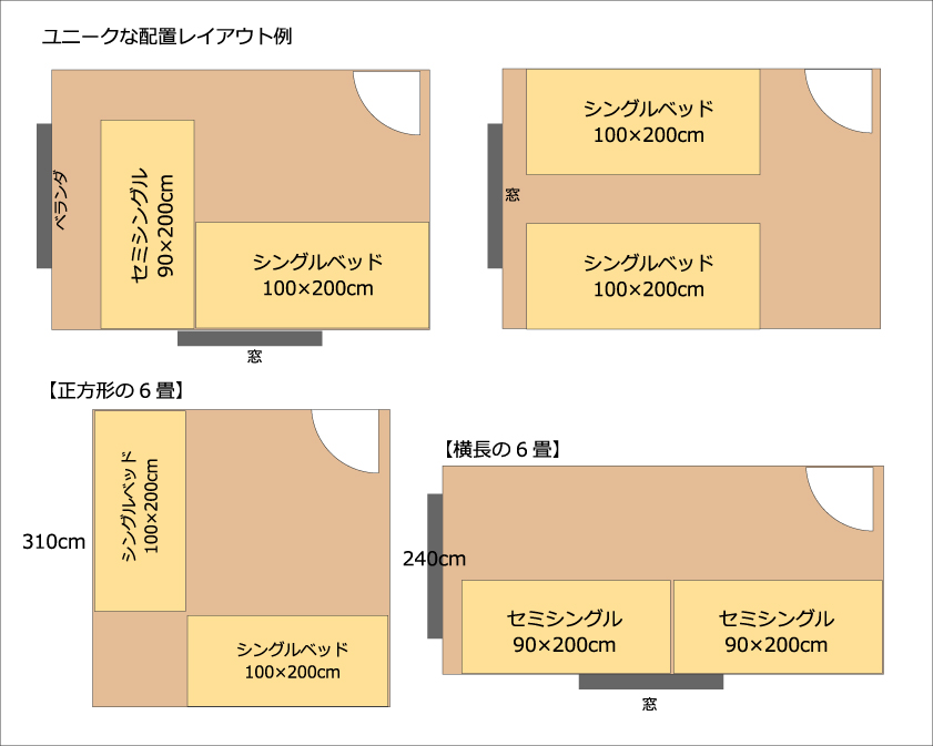 寝室レイアウト 6畳・8畳・10畳のベッドルームレイアウト事例CLAS。