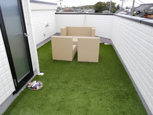神奈川県 S様邸のベランダすごい人工芝。