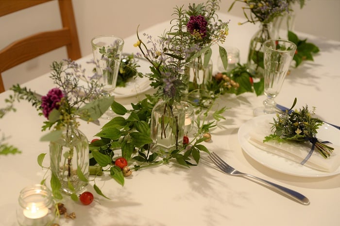 テーブルを彩る花装飾について「食卓のお花の飾り方」センターピースとは?フラワーエデュケーションジャパン。
