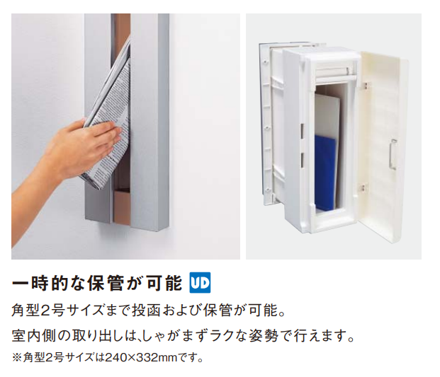 壁埋め込み型ポスト 郵便受け の室内側の床に投函された郵便物が落ちない方法。